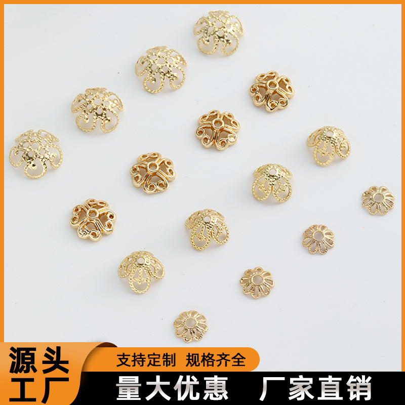 14k包金透かし彫り花托保色花帽珠托隔珠片diy串首飾品ブレスレット隔片散珠部品
