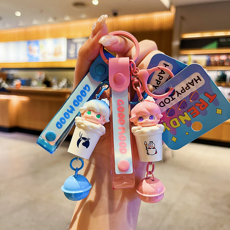 創意的なアニメの泡の男の子のミルクティーカップのキーホルダーのチェーンのかわいい公仔のカップルのカバンのペンダントの小さい贈り物の卸売り