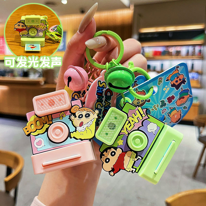 正規版の漫画のクレヨンしんちゃんはキーチェーンのかわいい発光のおもちゃの学生のカバンのペンダントの贈り物をたたいています。