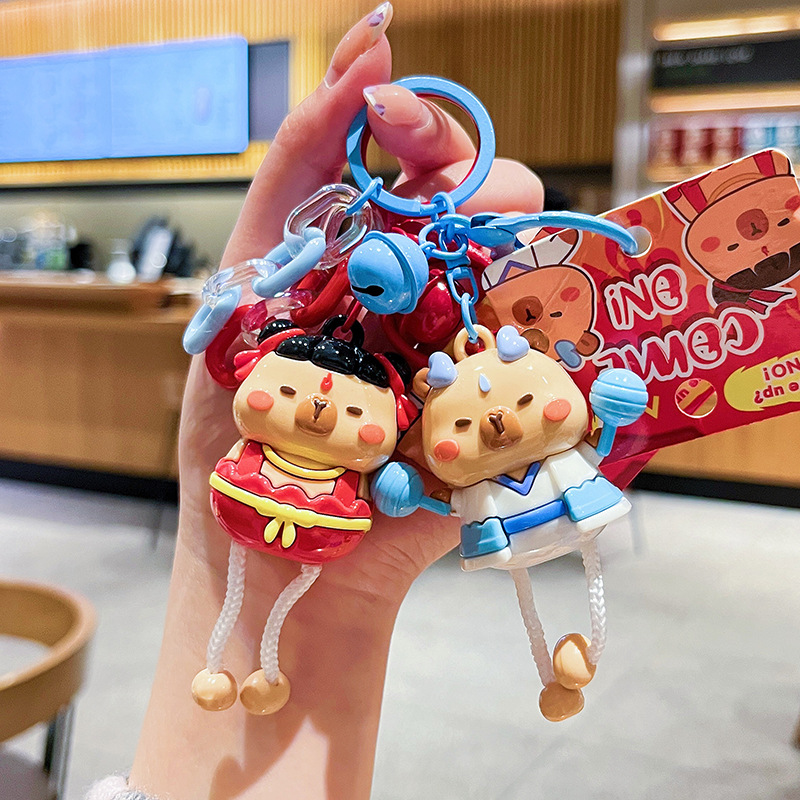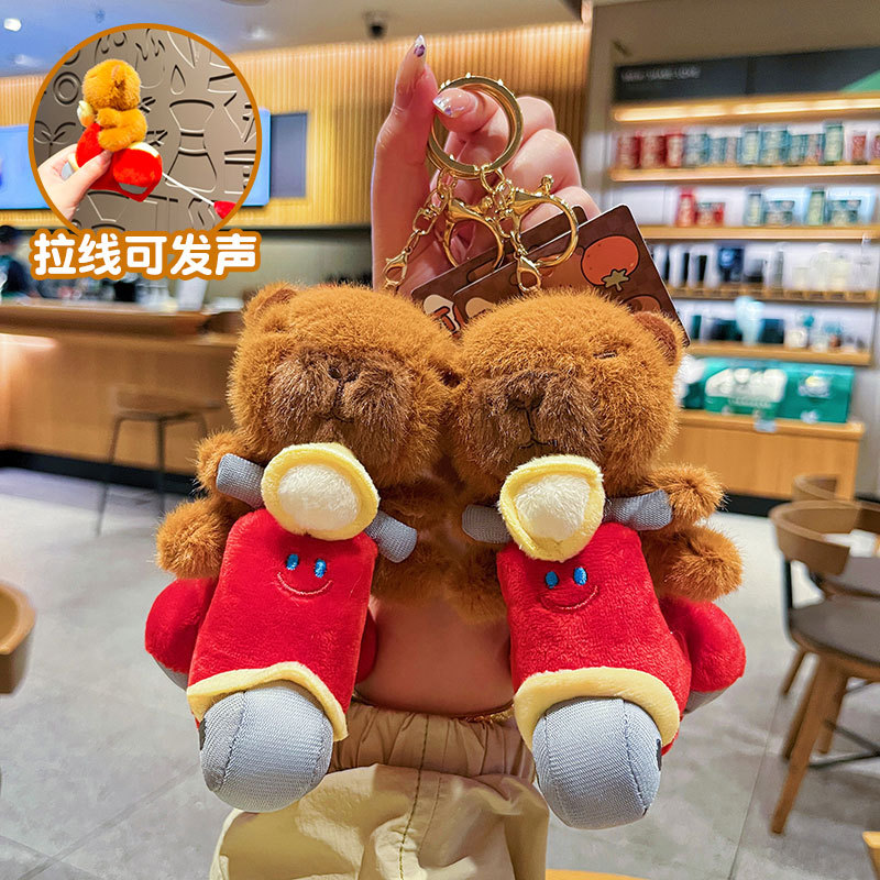 創意的なアニメのぬいぐるみ自転車のカピバラのキーホルダーが可愛いカピバラの発声玩具カップルのカバンのペンダントです。