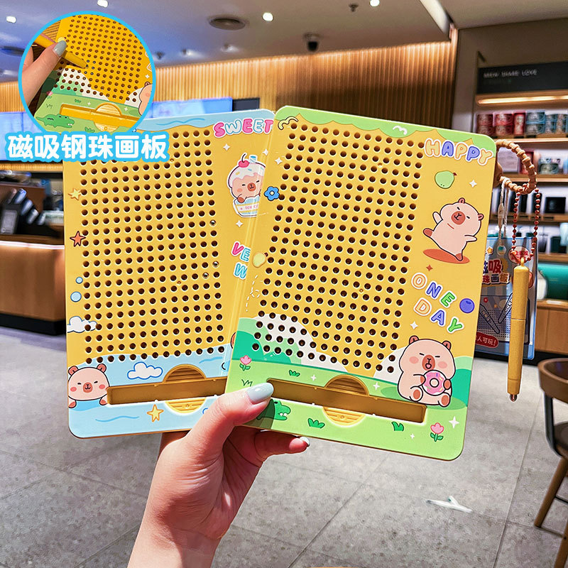 漫画かわいいイルカ磁気ボール描画ボードキーホルダーチェーンかわいいカピバラ子供のおもちゃ学生スクールバッグペンダント
