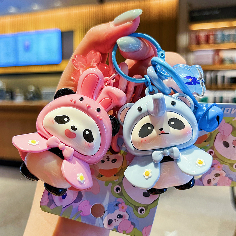 創意的なアニメの童話の森のレインコートのパンダのキーホルダーのカップルのカバンのペンダントのかわいい頭カバーの公仔の贈り物