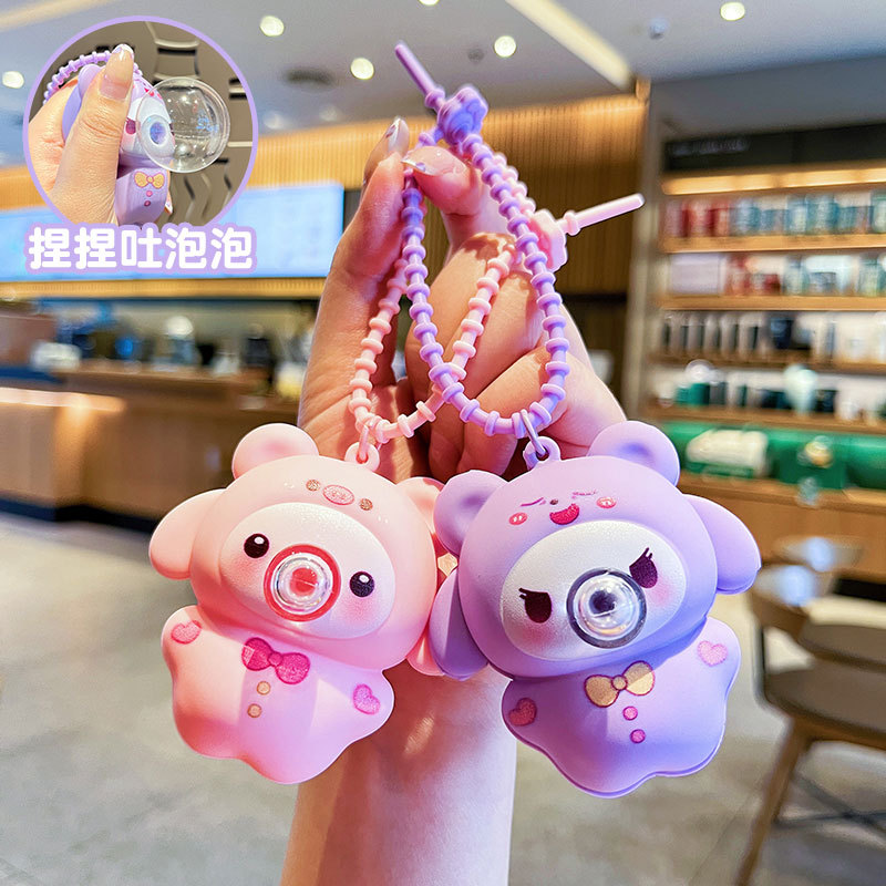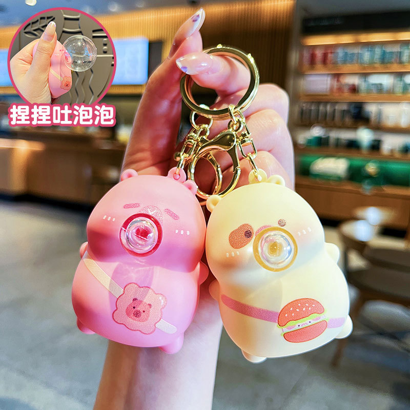 クリエイティブな漫画の動物の泡を吹くキーホルダー、かわいい減圧子供のおもちゃ、学生バッグペンダント、小さなギフト