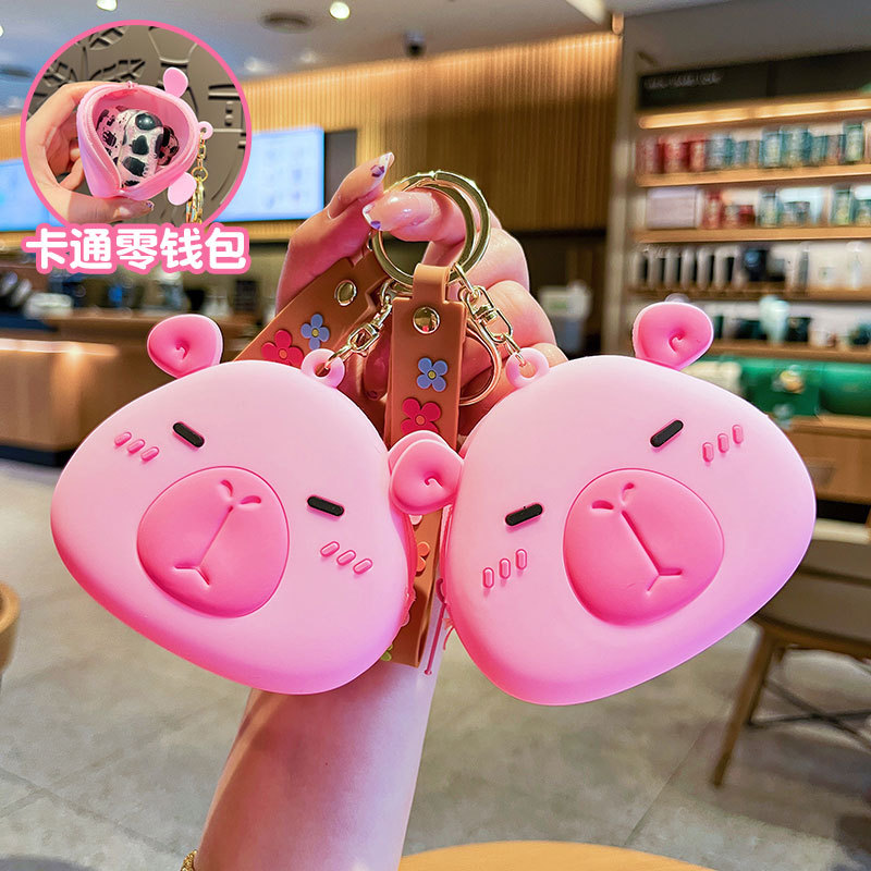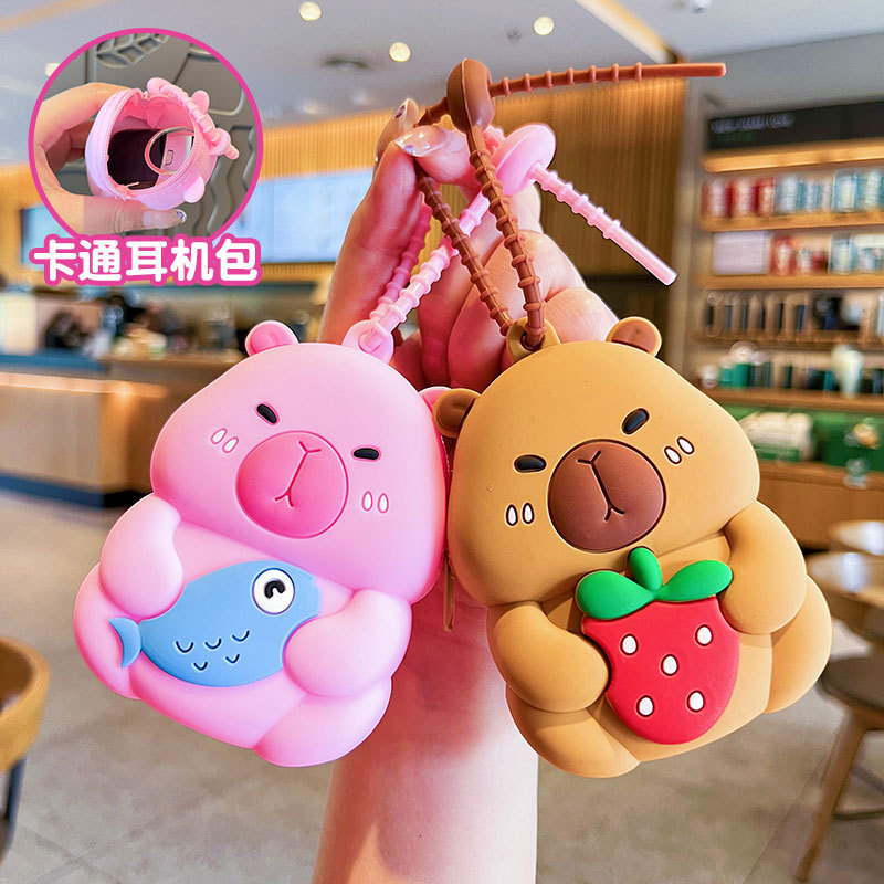 クリエイティブ漫画シリコーンカピバラ小銭入れキーホルダーチェーンかわいいカピバラヘッドフォンバッグ学生バッグペンダント