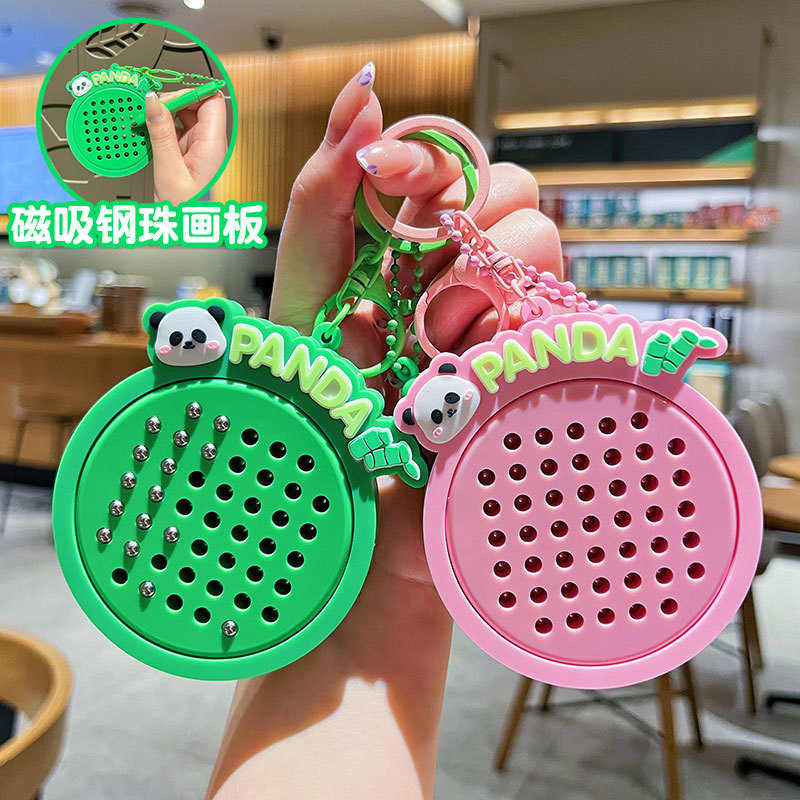 創意的なパンダの磁気は鋼の玉の画板のキーホルダーのかわいい漫画の趣味のおもちゃのキーホルダーの子供のかばんのペンダントを吸います。