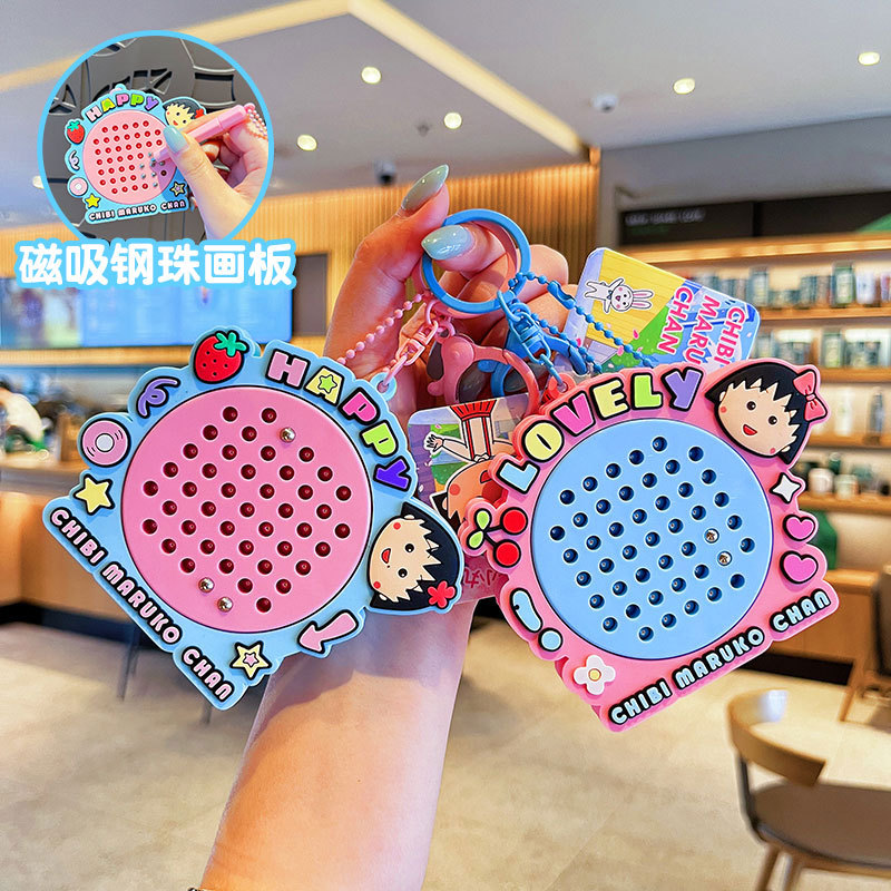 本物の漫画ちびまる子ちゃん磁気鋼球製図ボードキーホルダーかわいい子供のおもちゃ学生バッグペンダント