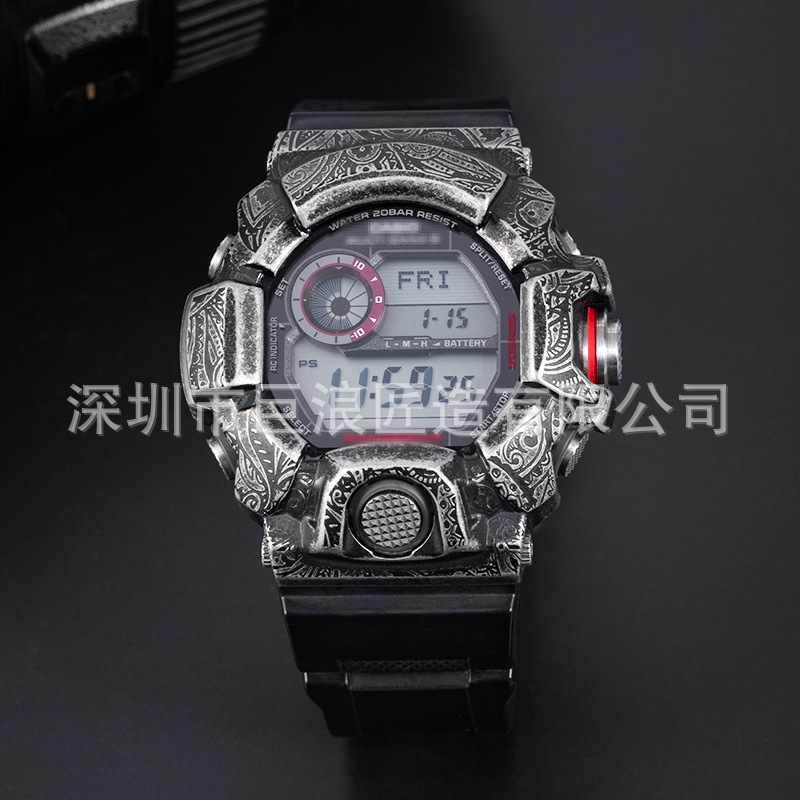 レトロにして古い残古黒GW-9400腰果花ペイズリー彫刻花全金属ケースを改造して大波職人が作った