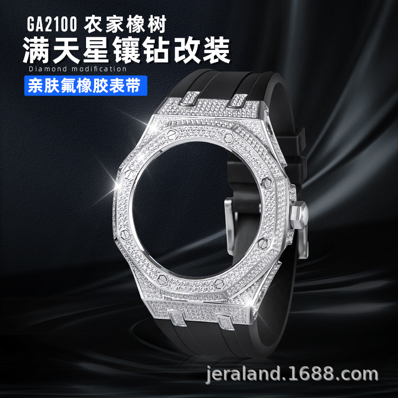 ジェラランド農家オーク GA-2100 ステンレススチールケース改造アクセサリー フッ素ゴム製時計バンド トレンドファッション