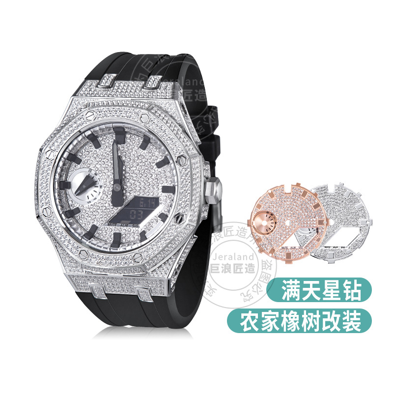 農家の樫の木はga2100満天の星を改装して金属文字板の太陽の紋様の文字板のセットの時計の時計のバンドを入れます。