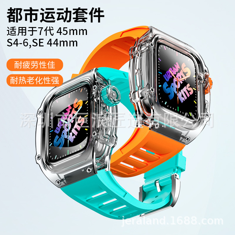 Jeralandアップル腕時計はapple watchケースの全透明フッ素ゴムバンド44/45mmを改造した