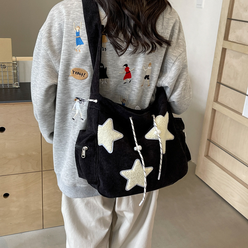 大容量のコーデュロイのバッグの女性のシングル肩insカジュアルな五角星の斜め掛けのカバンが可愛いです。