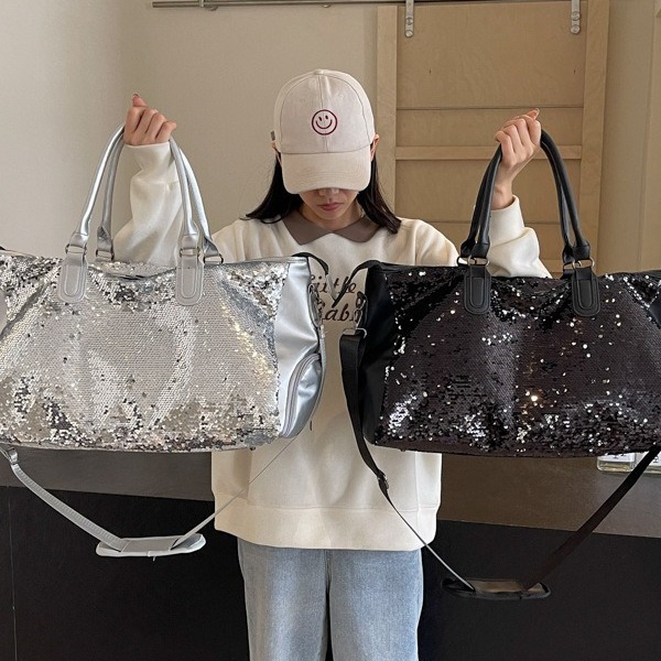 国境を越えた新しい旅行バッグの新しいトレンドのスパンコール女性の軽い荷物袋の大容量スポーツフィットネスバッグ