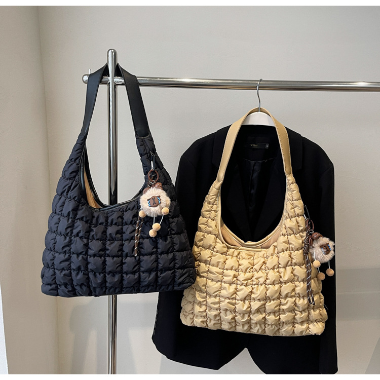 新しい雲のしわの包みの女性の2024秋の百合のファッションの斜めの包みの大容量の菱の形の格の肩の綿の服の包み