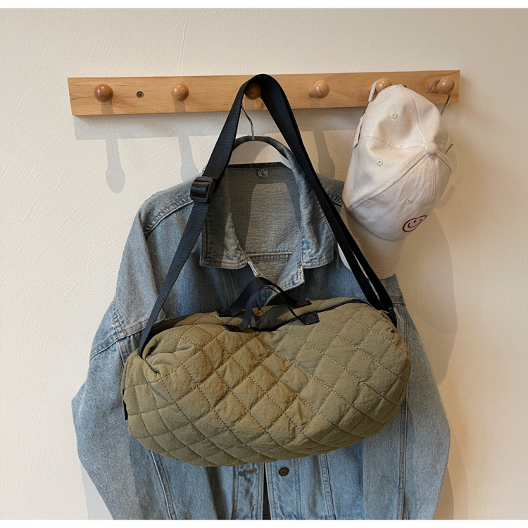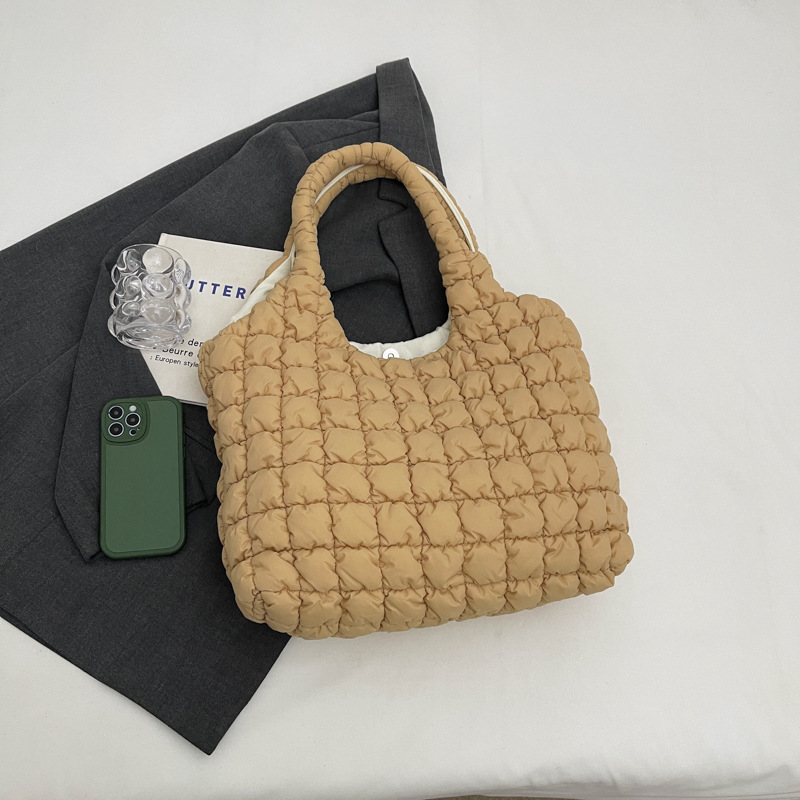 2024冬の新型雲包クロスボーダーしわカジュアル餃子包百合菱格韓系ダウン斜め掛け女性バッグ