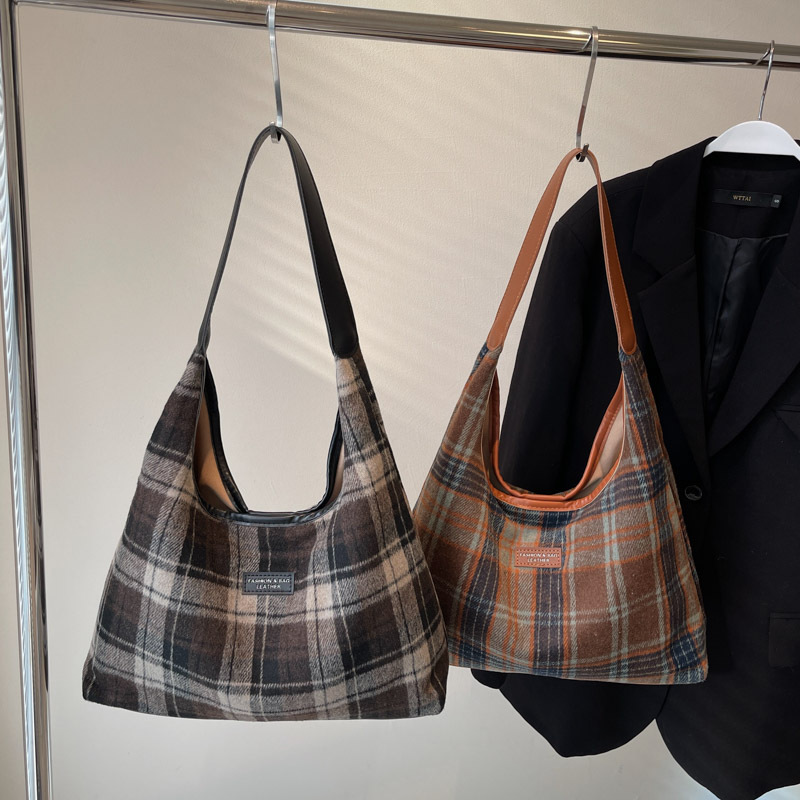 韓系格紋特包女ins新作秋冬レトロ大容量学生授業通勤シングルショルダーバッグ