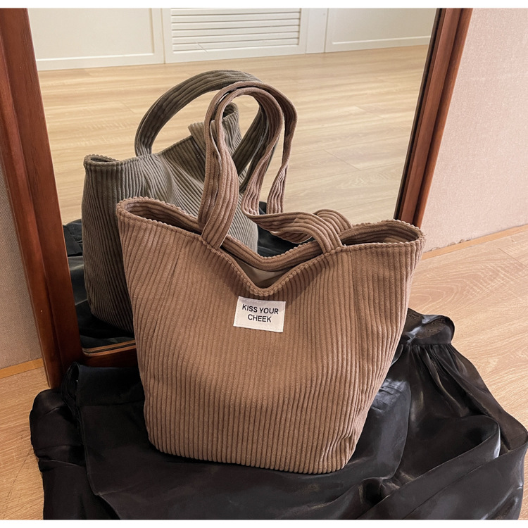 大容量秋冬新作レディースバッグコーデュロイ通勤トートバッグ韓国カジュアルレトロシングルショルダーバッグ