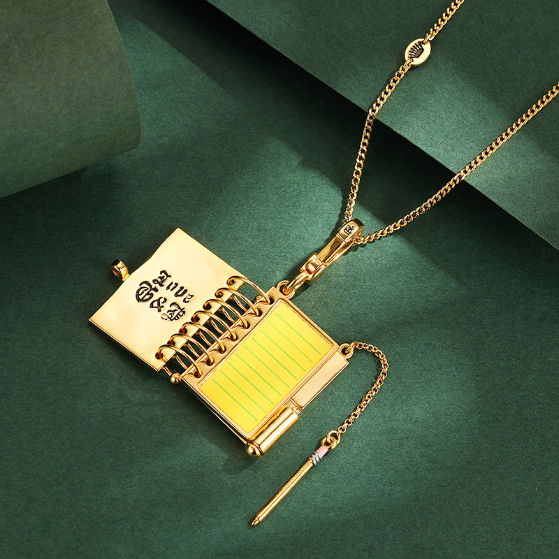 軽くて豪華な小衆のアルファベットのプリントの立体のルーズリーフのノートのペンダントは設計の高級な設計感のネックレスの潮を開くことができます。
