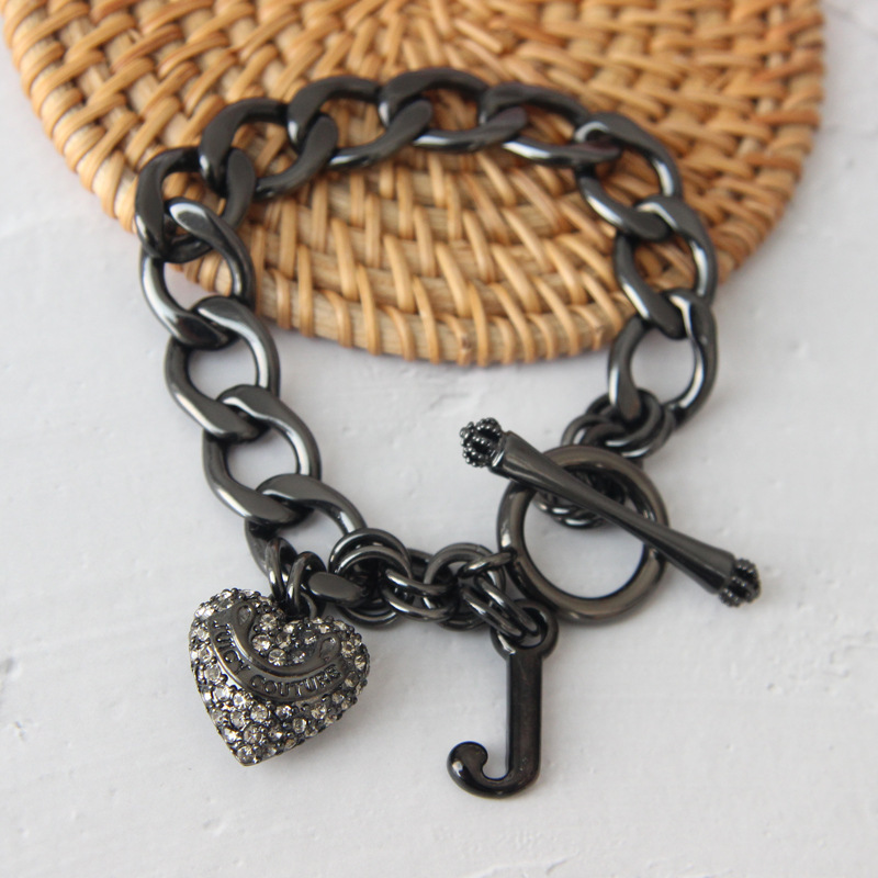 欧米のレトロな風の個性のヒップホップの古銅色の愛の基礎の金のブレスレットのフルドリルの桃の心のJ字のペンダントのブレスレットのネックレス