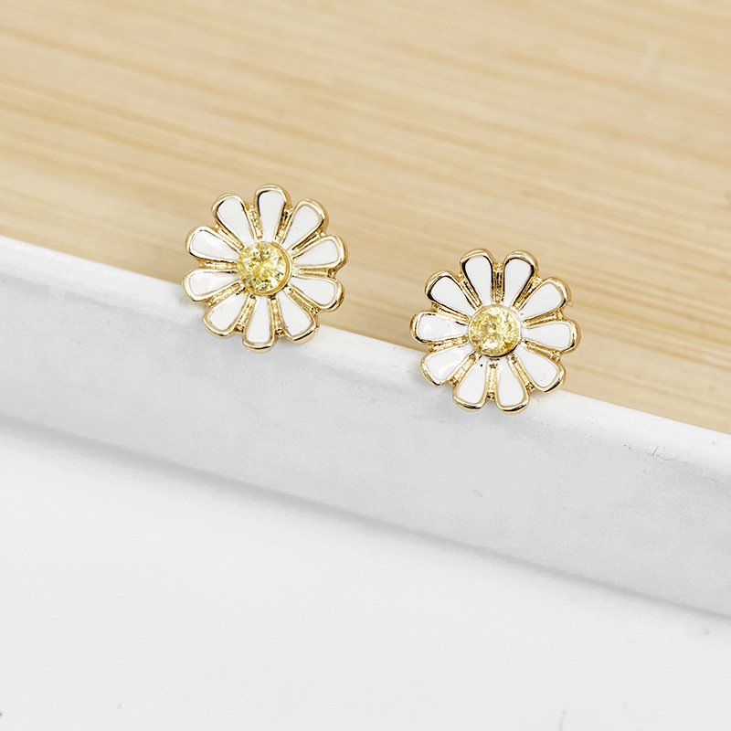 レディース潮森系ins冷淡风小柄デイジー14kゴールドピアスシンプルおしゃれ花柄アクセサリー七夕ギフト