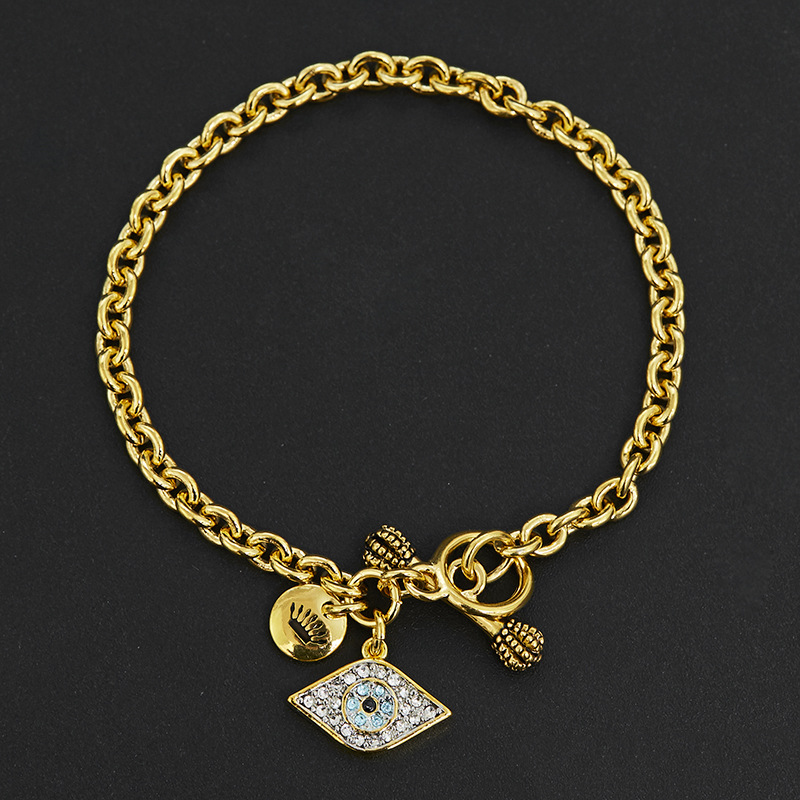 ファッショナブルで多用途なトルコブルーアイズ T バックルブレスレットインコールドスタイルダイヤモンド悪魔の目学生金メッキジュエリー