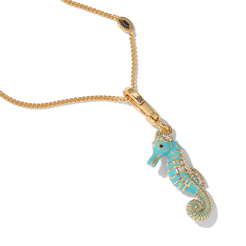 女性の個性のファッションのエナメルの釉薬はダイヤモンドの青い海馬のペンダントの海洋の生物の包みのペンダントのアクセサリーの卸売りを入れます。