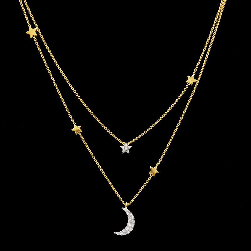 ファッションの女性insの冷たい風の星の月のネックレスはダイヤモンドの2層の星の月を入れて多くぶら下がっています。