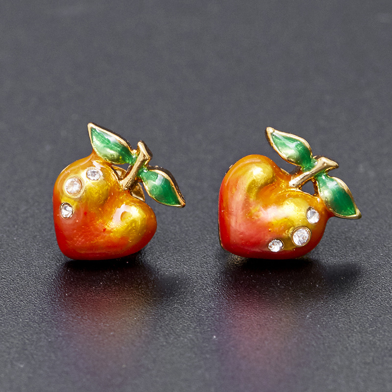 シンプルでコンパクトなファッションネット赤気質水蜜桃925銀針ピアス女潮ins桃果物エナメルアクセサリー
