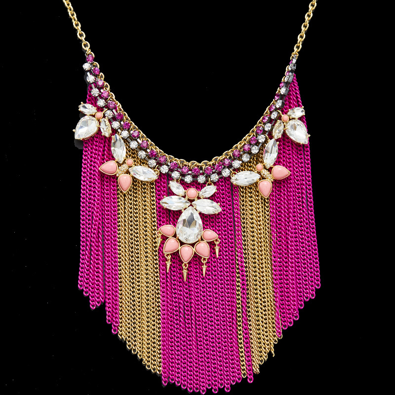 クリスタルジルコン蝶水滴カラー流蘇ネックレスボヘミアン軽贅沢ドレスチェーン鎖骨鎖女