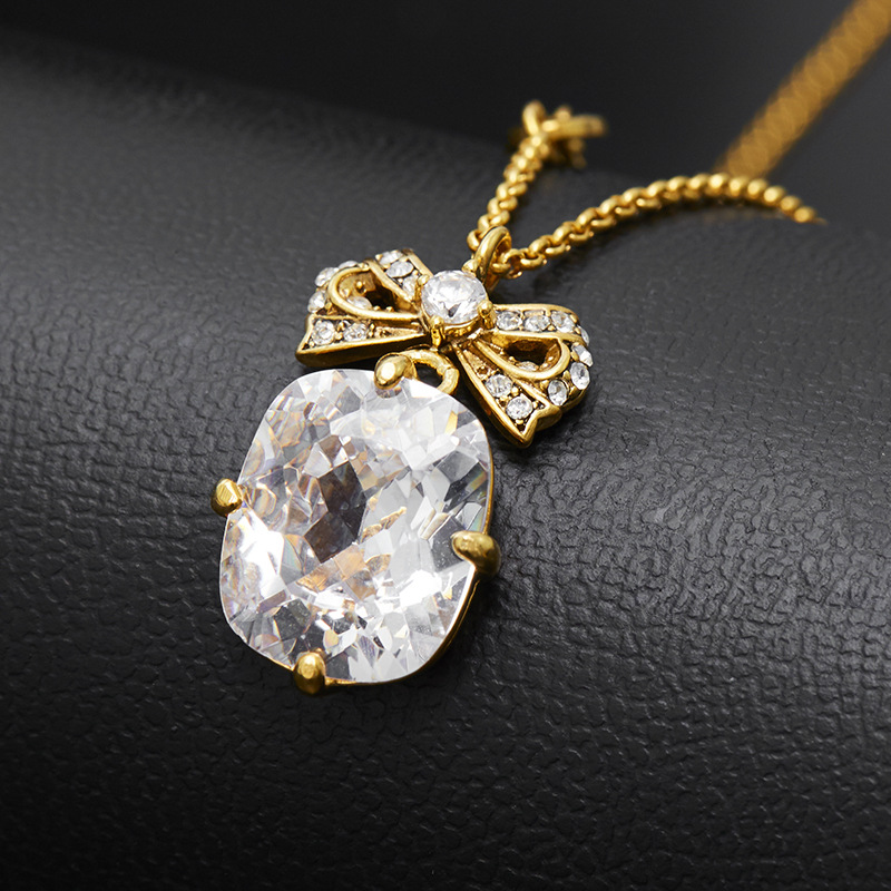 卸売りの特価のネットの赤い気質のシンプルな蝶結びの四角形のジルコンのネックレスの甘いピンクの宝石の鎖のチェーンの装飾品