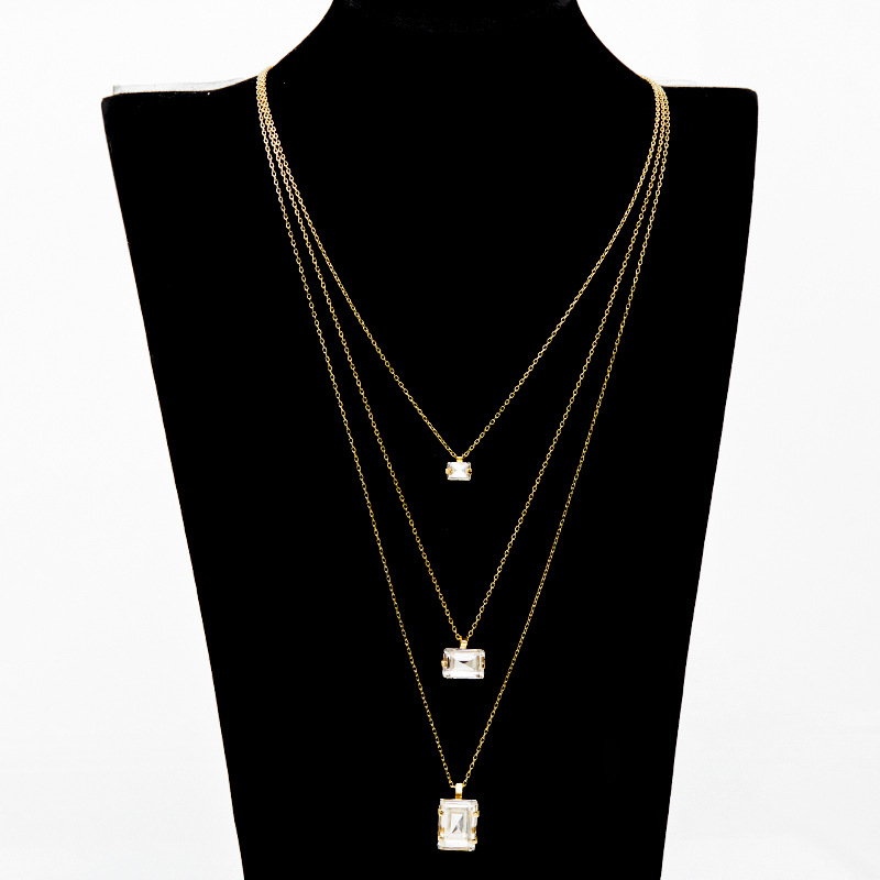 卸売スクエアクリスタルジルコン三層取り外し可能なネックレスパーソナライズされた多用途マンハッタントレンディなブランドロングセーターチェーン女性用