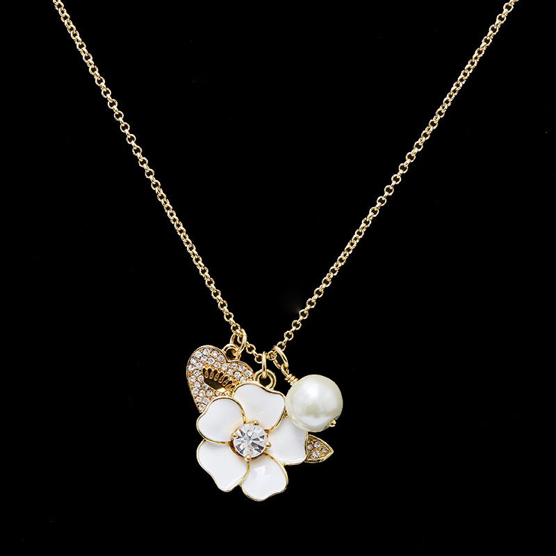 韓国版気質ins森系ツバキの長いネックレスの白い花の真珠の愛の王冠のビーズのセーターのチェーン