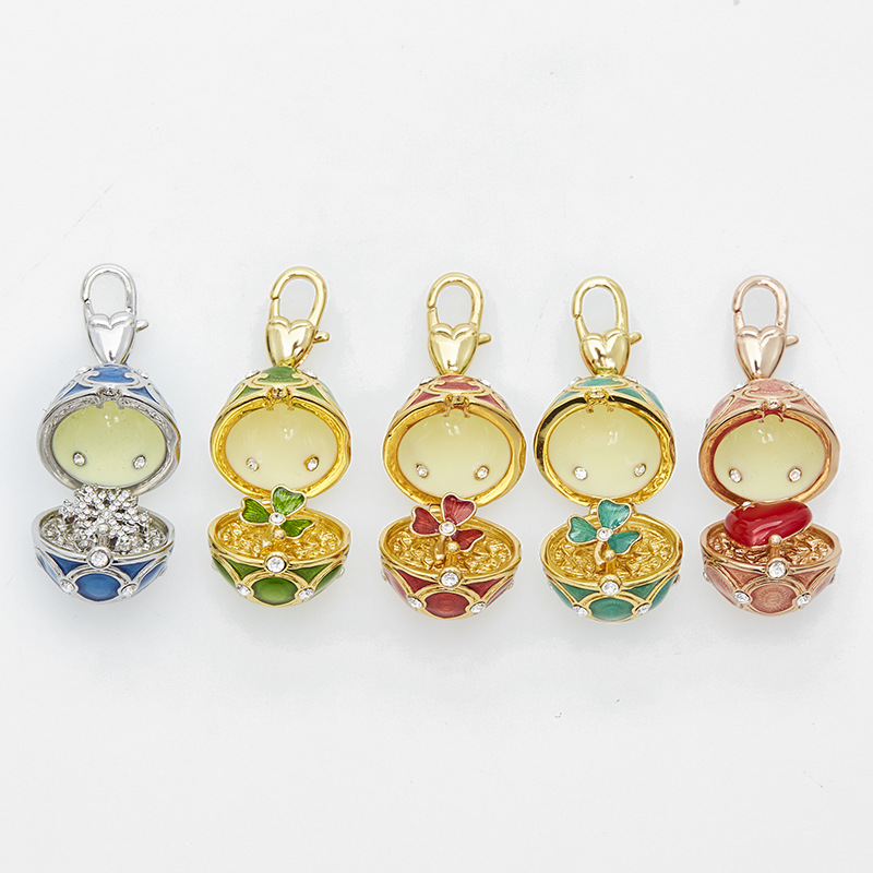 青島貿易エナメル装飾品 開閉式エッグペンダント 赤いハート型 雪の結晶 三つ葉のクローバー型 ペンダントキーホルダー