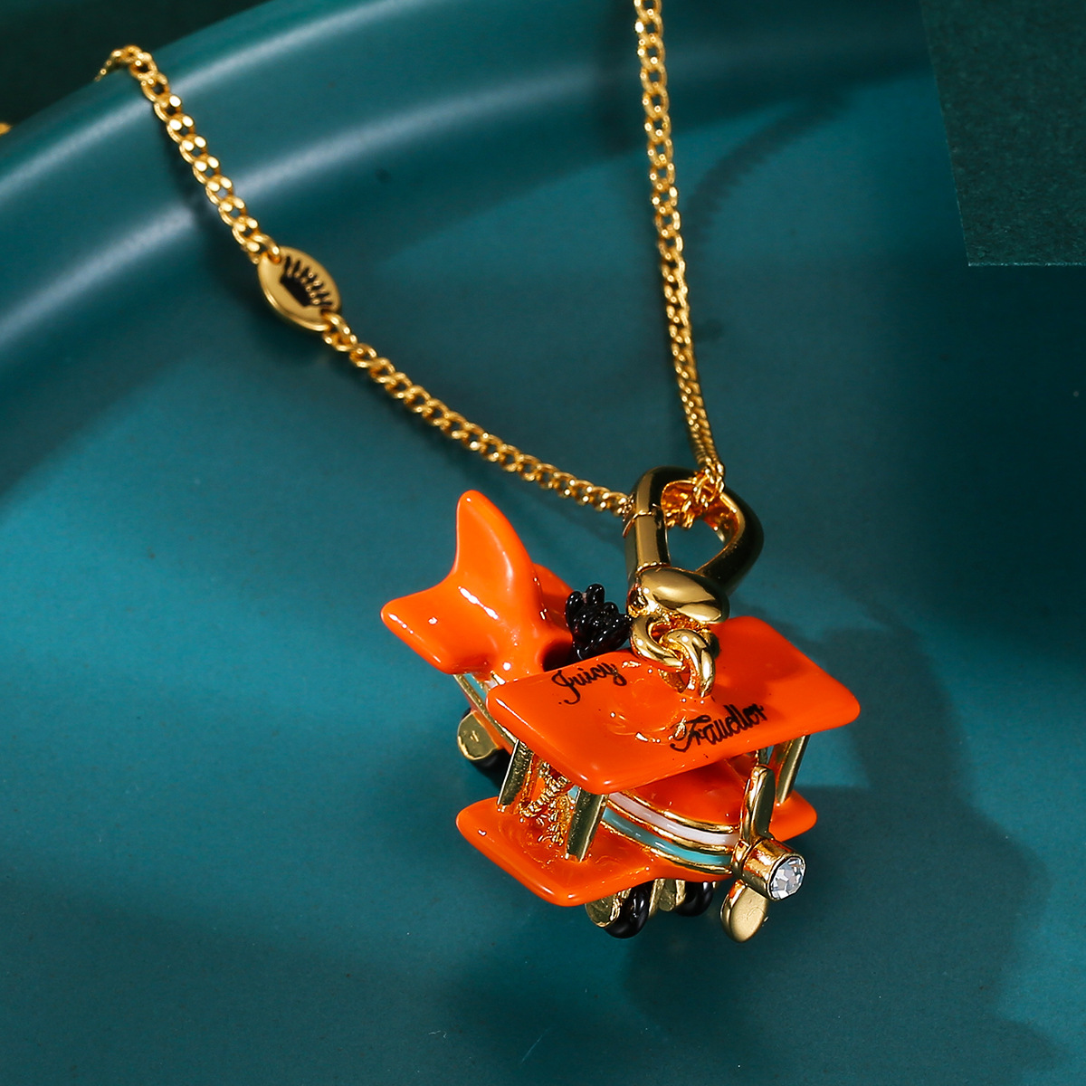 ファッション大衆juicyエナメル釉薬オレンジ色可活動小飛行機ペンダントネックレス青島アクセサリーセーターチェーン
