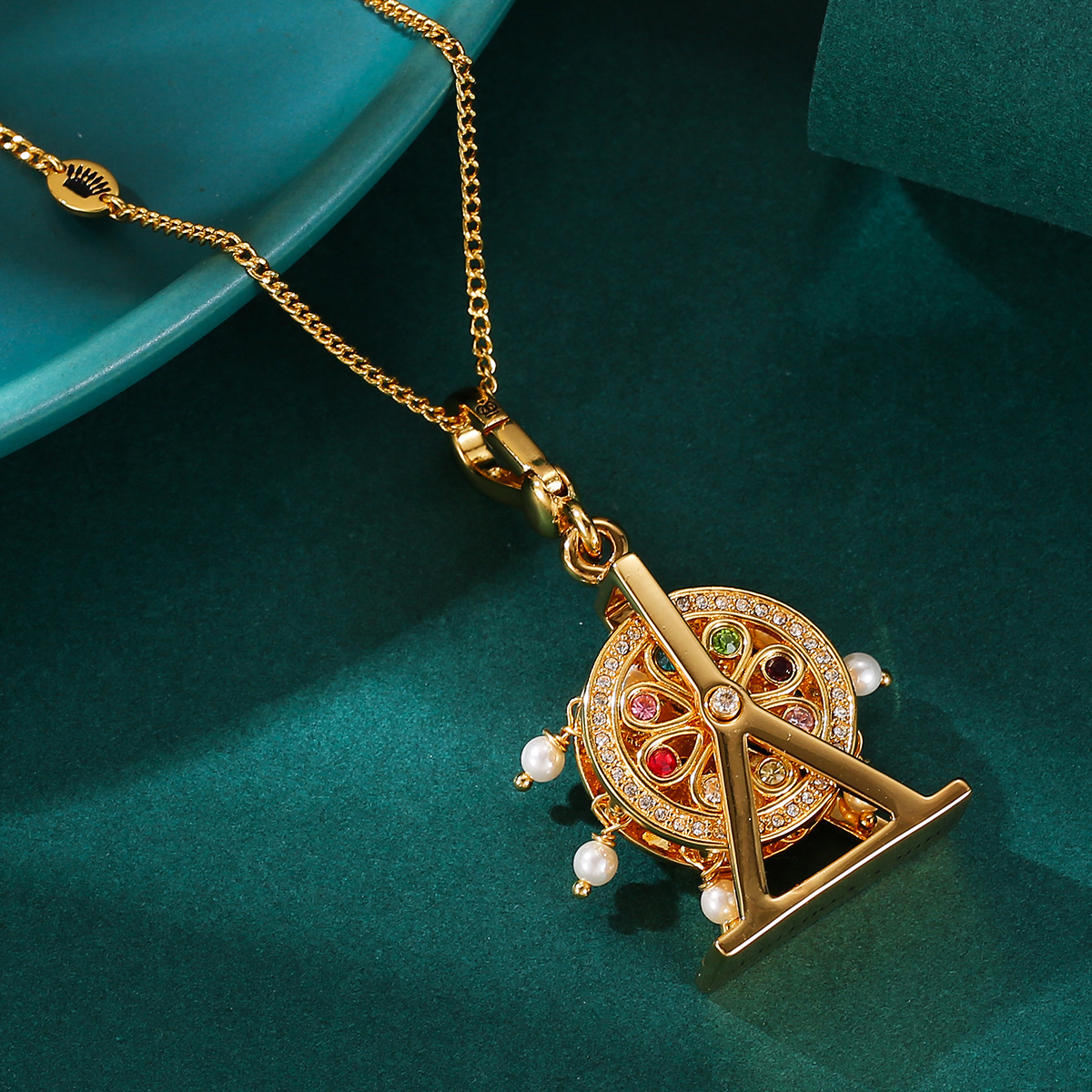 気质可活カラークリスタルパール観覧车ペンダントネックレスjuicyファッション风风风风ウインドブレーカーチェーンアクセサリー