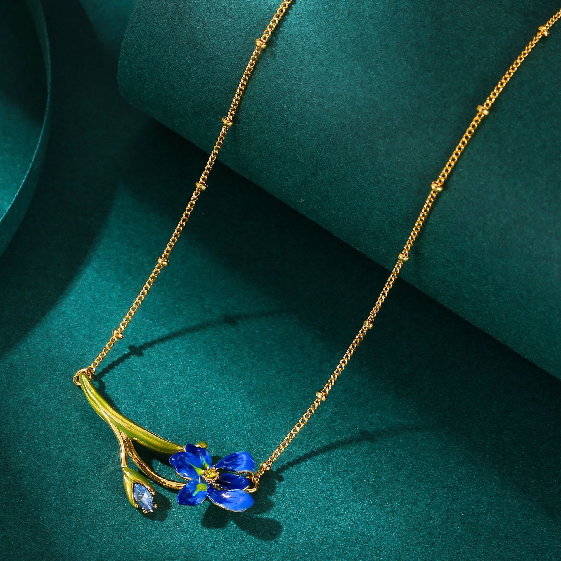 女性の高級感エナメル釉薬青い花アイリスネックレスファッション気質学生鎖骨鎖青島アクセサリー