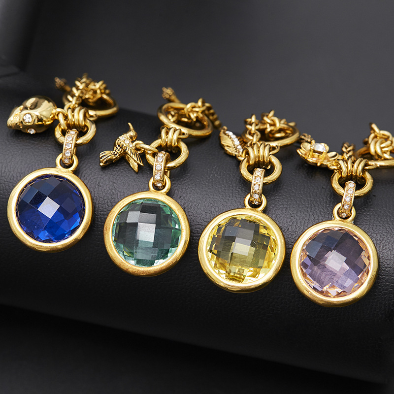 レトロ風ファッション円形水晶ジルコン羽花皇冠小鳥頭蓋多ペンダントブレスレット金メッキアクセサリー