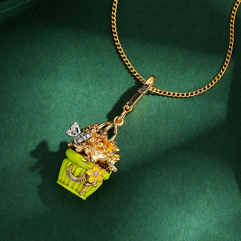 卸売りのエナメルの釉薬の緑色の植木鉢のペンダントはダイヤモンドの蝶の色の花のアルファベットの花のかごの首輪のペンダントのキーホルダーを入れます。