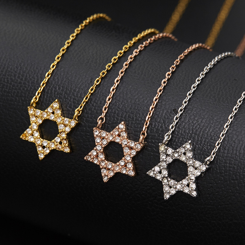 日韓森系のシンプルなダイヤモンドのダビデの星の鎖の個性に合わせて、六芒星のネックレスのネックレスのチェーンのアクセサリーの卸売りをします。