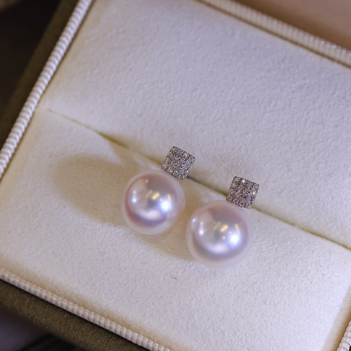 Pt900 アクセサリー シンプルなシュガーキューブ イヤリング ホワイト ジルコン パヴェ ビーズ 9-10mm アクセサリーにはビーズは含まれません