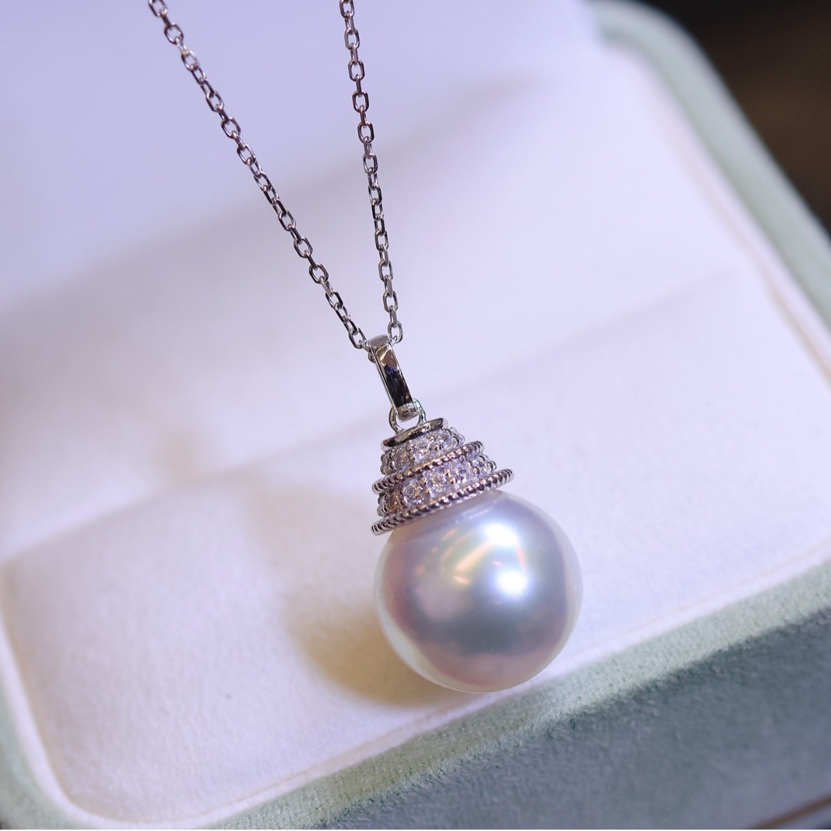 Pt900付属品真珠ペンダント白ジルコン嵌め込み図12-13mm付属品ビーズなしチェーンなし