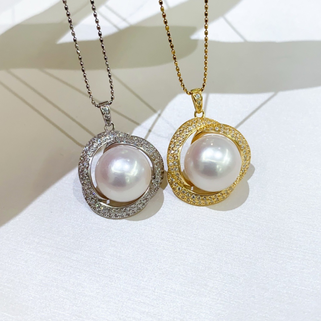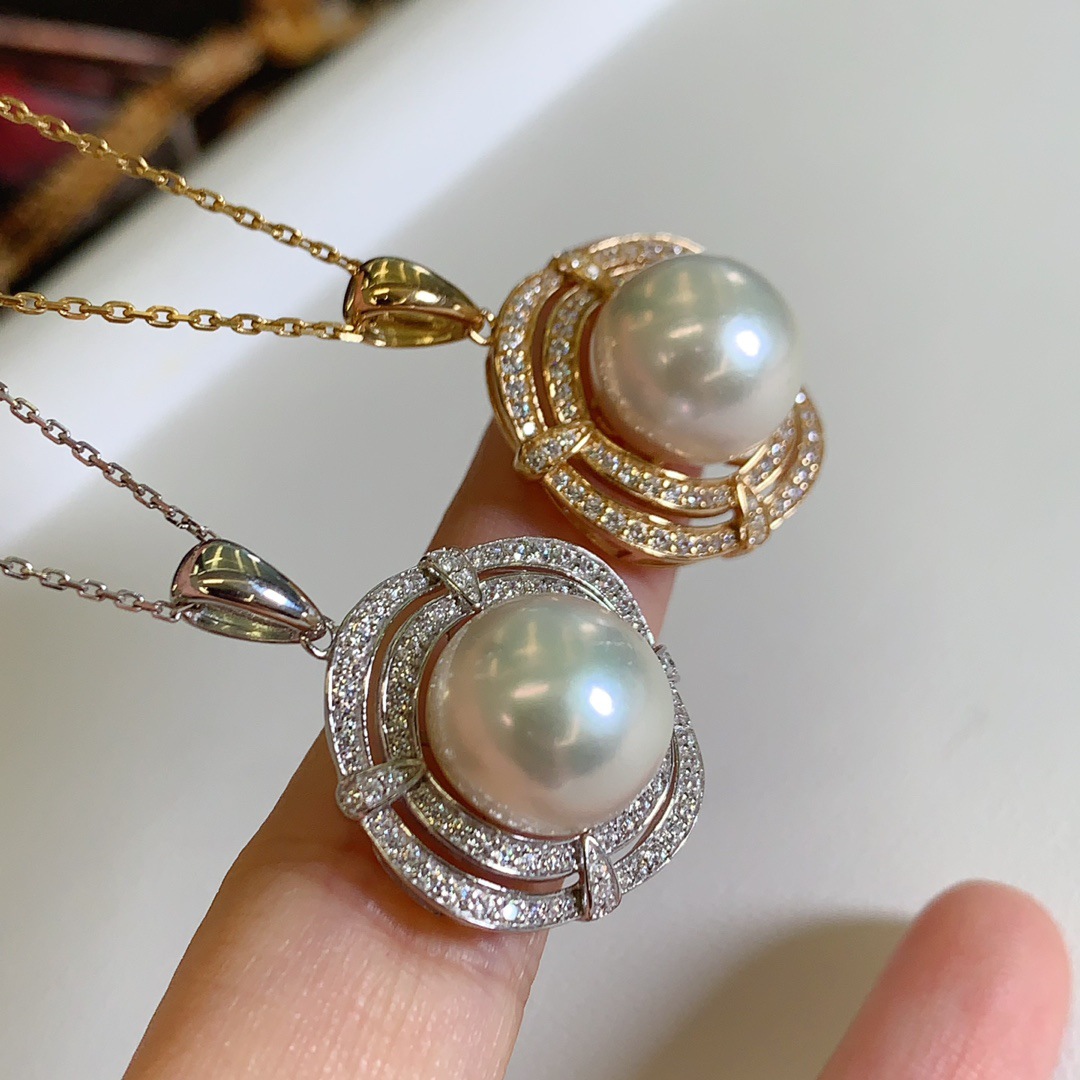 S925銀付属品重工純銀真珠ペンダントビーズ11-12mm付属品ビーズなしチェーンなし