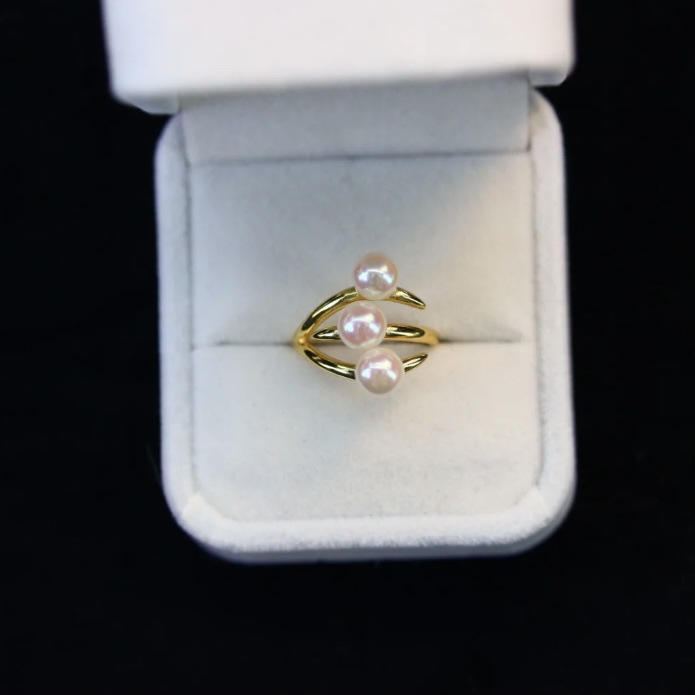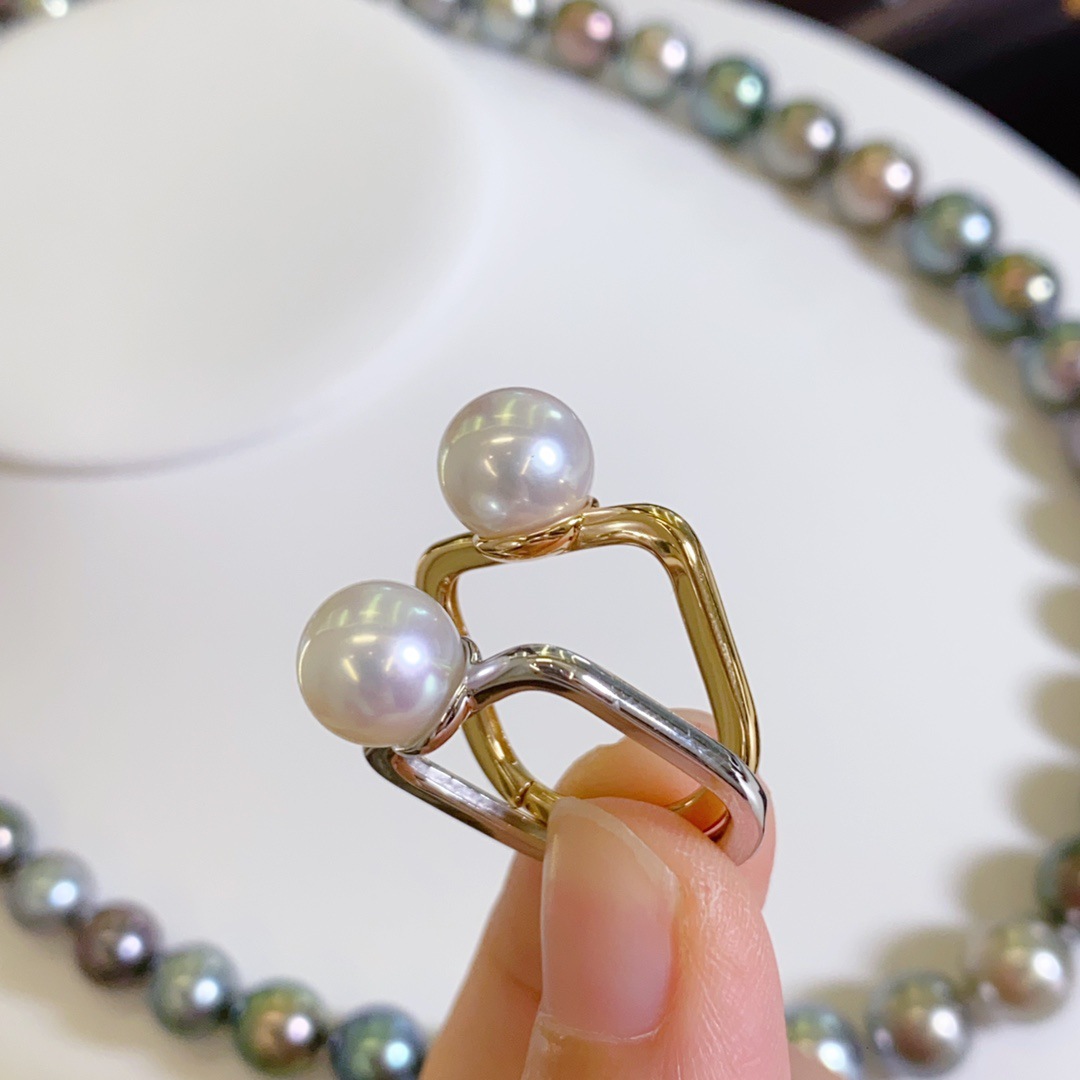 S925シルバーアクセサリーシンプルな正方形の真珠の指輪の黄色と白の2色のビーズ9-10mmのアクセサリーはビーズを含みません。