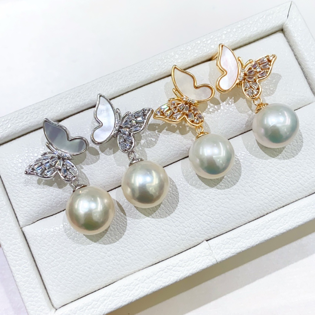 S925銀部品セイコー純銀蝶ピアス白ジルコンと母貝モザイク11-12ビーズなし