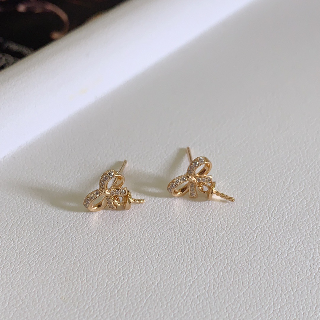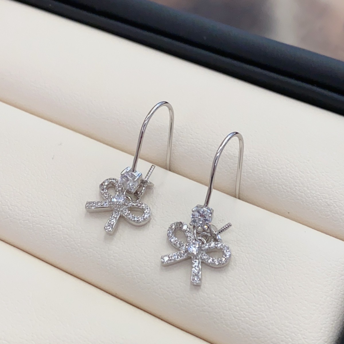S925銀部品蝶ネクタイピアス白ジルコンモザイク精工純銀参考ビーズ9-10mm