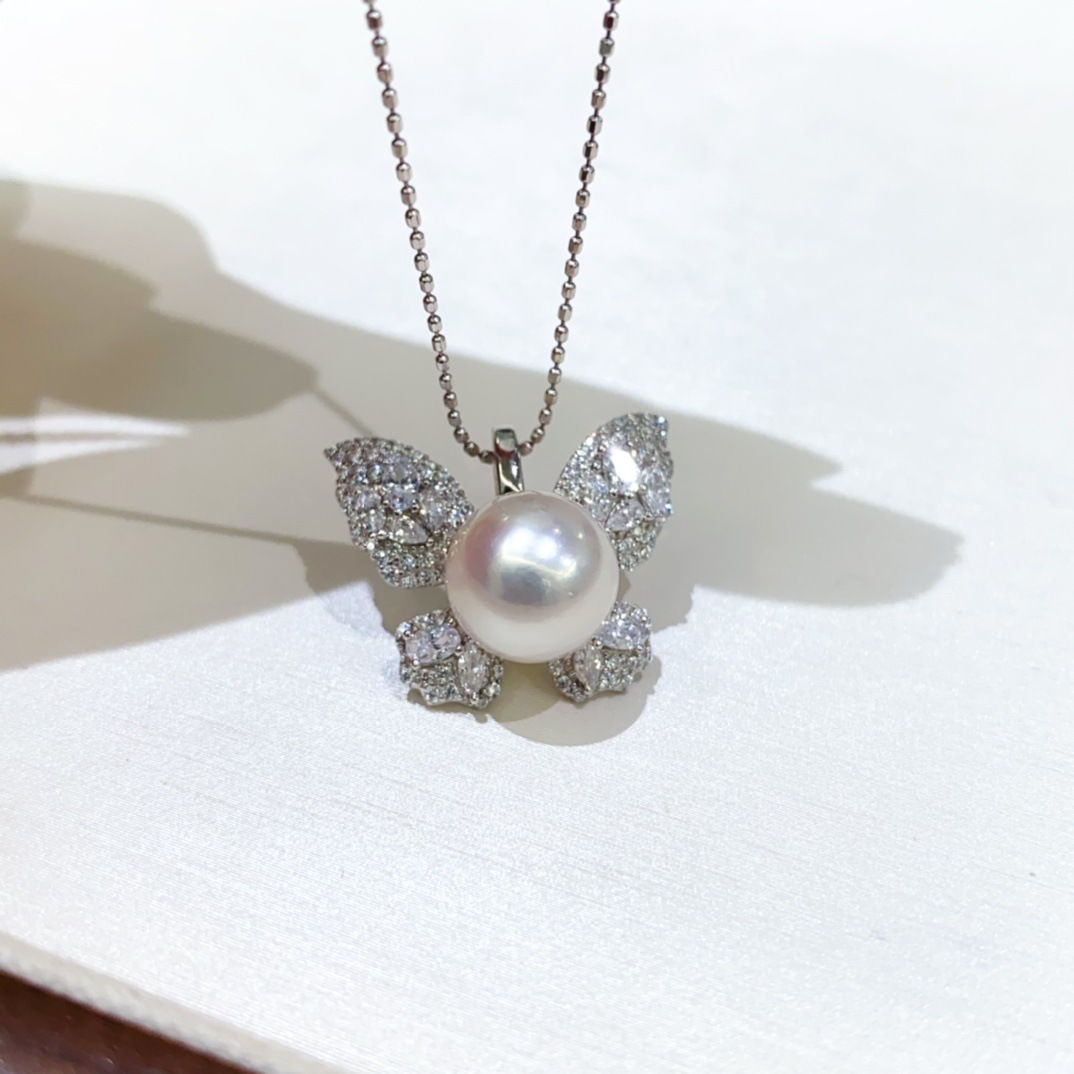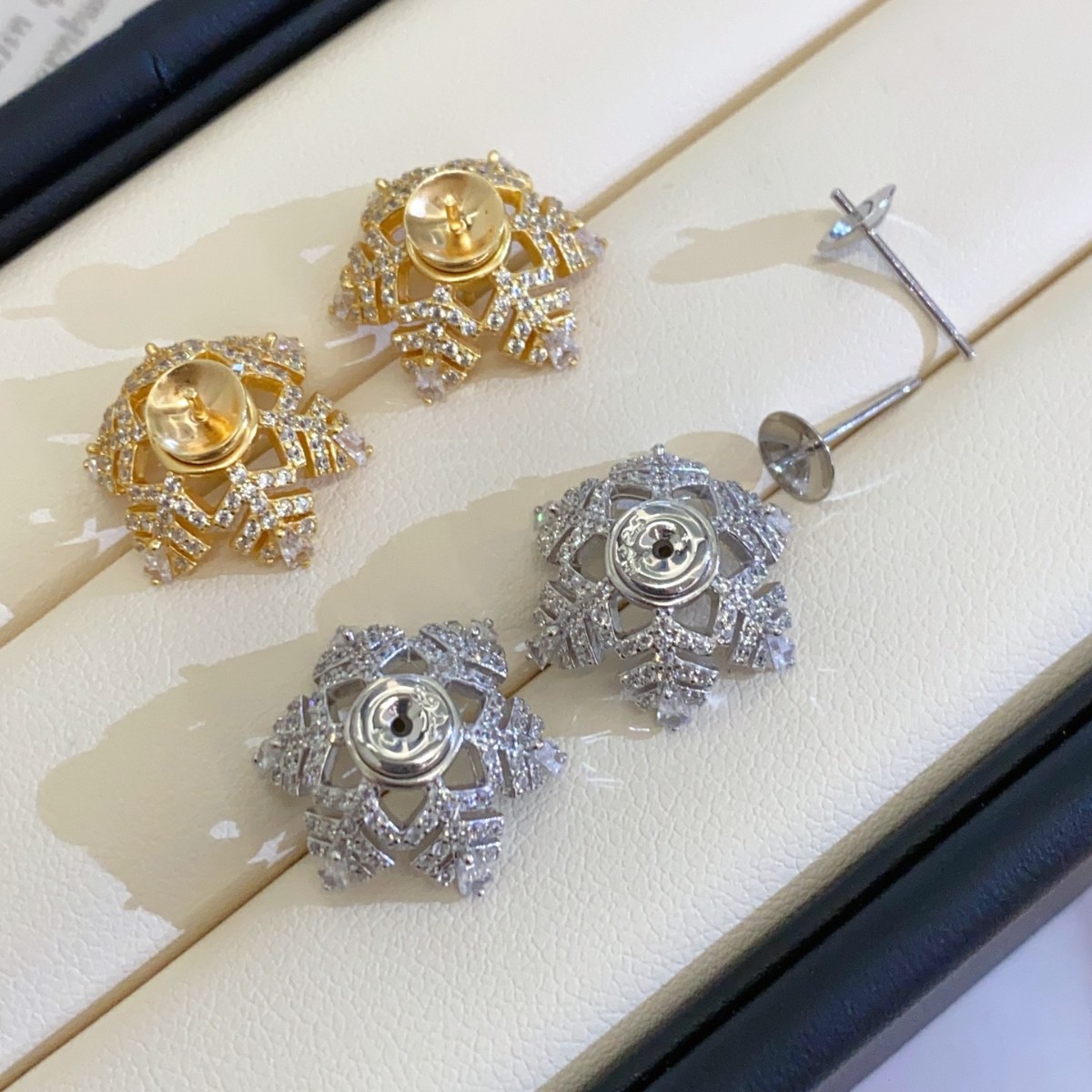 S925銀部品塹壕雪花真珠ピアス白ジルコンの嵌め込み図と9-10mmビーズ