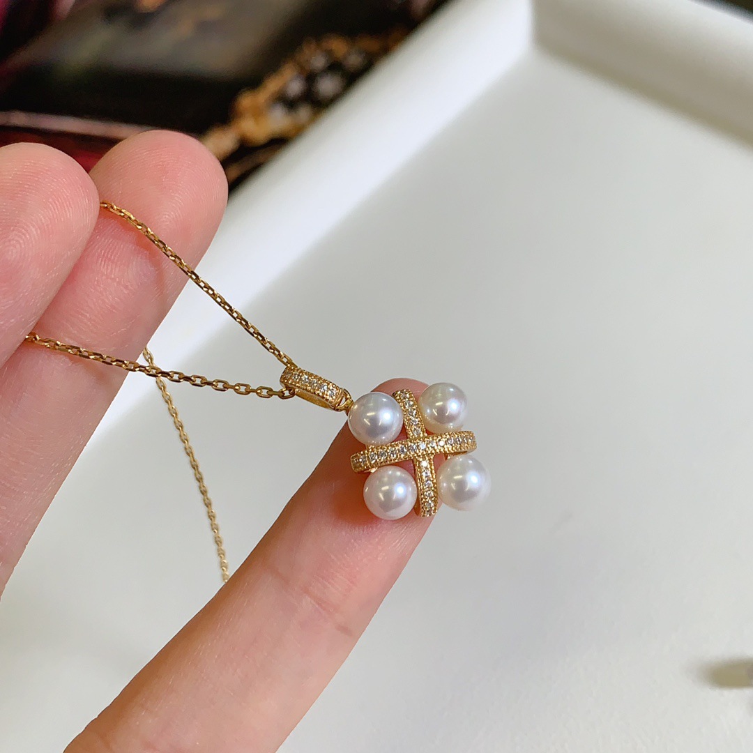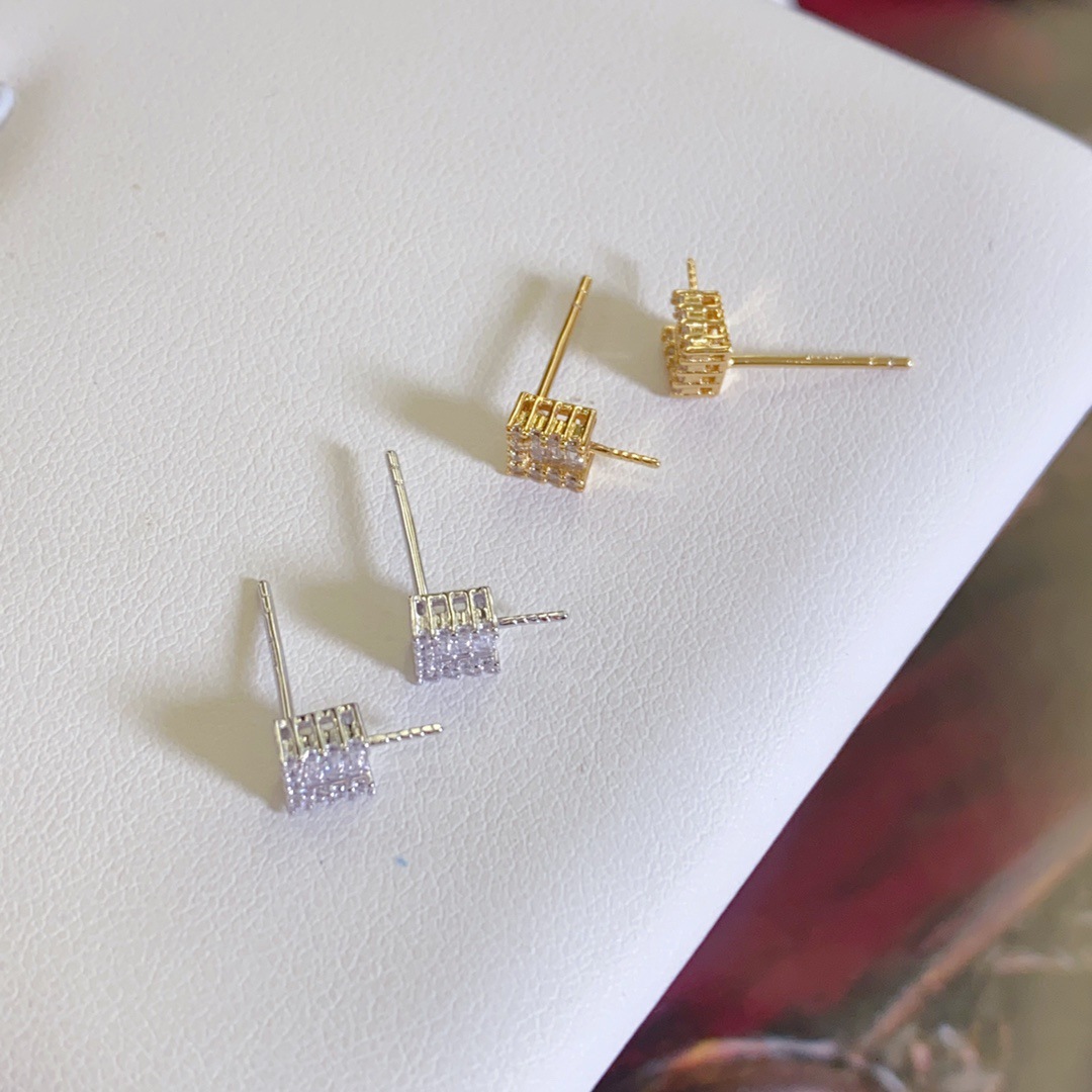 S925銀付属品角糖金真珠ピアス白ジルコンモザイク黄白2色配珠9-10mm無珠
