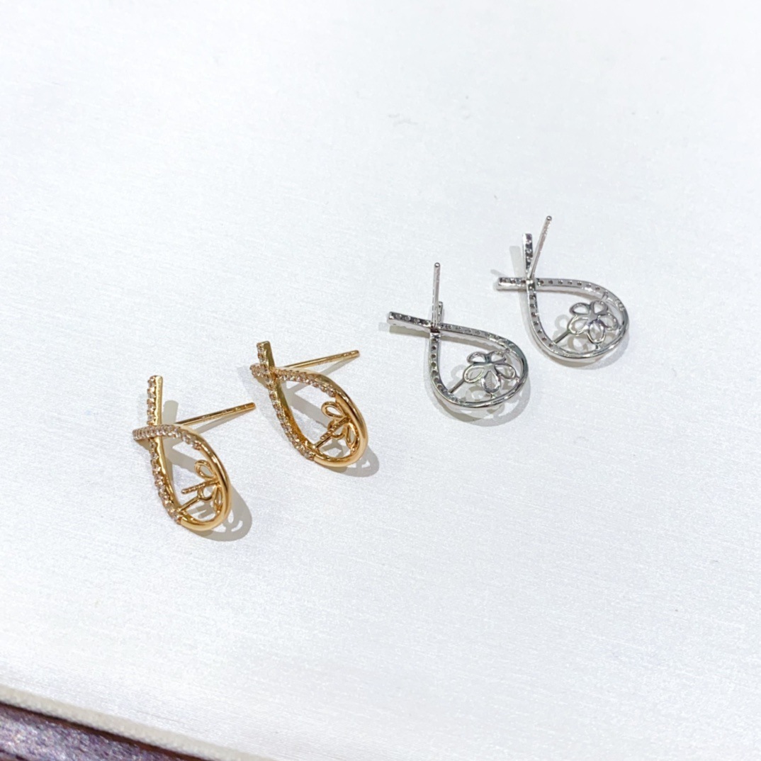 S925銀部品アーチ形葉デザインピアス白ジルコンモザイクビーズ9-10、10-11mmビーズなし