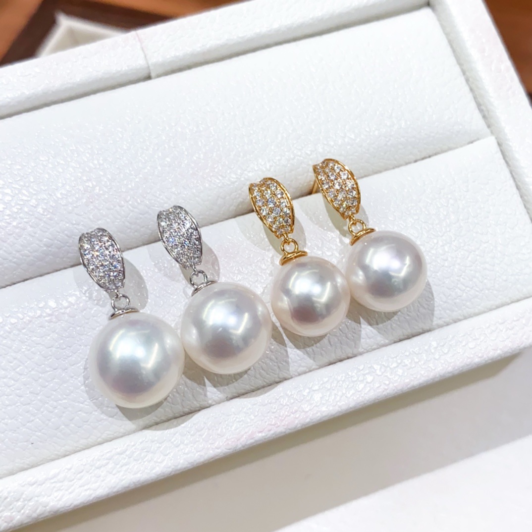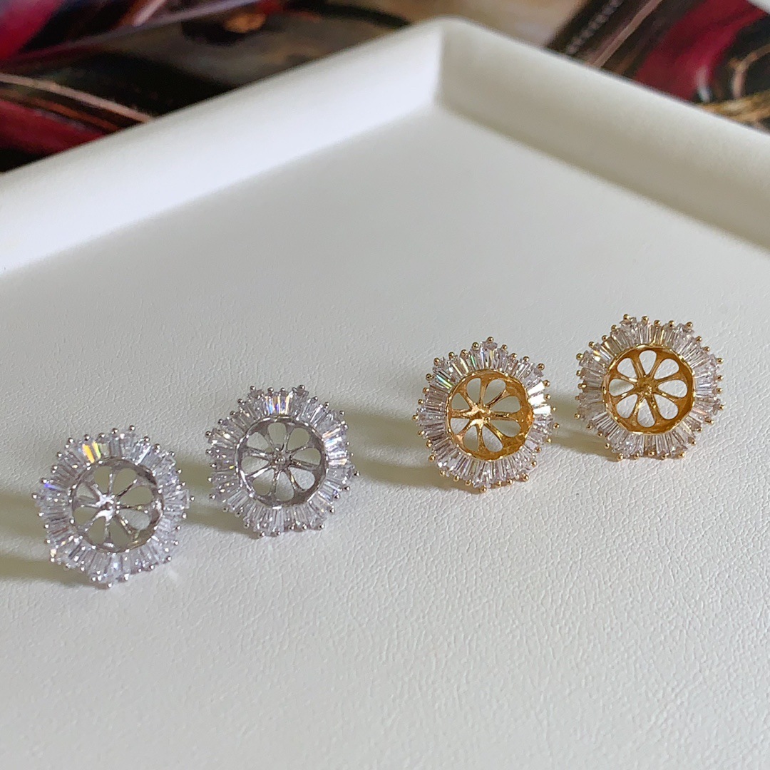 S925シルバーアクセサリー取り外し可能なビーズキャップパールピアスホワイトジルコンモザイク参照ビーズ10-11-12mm