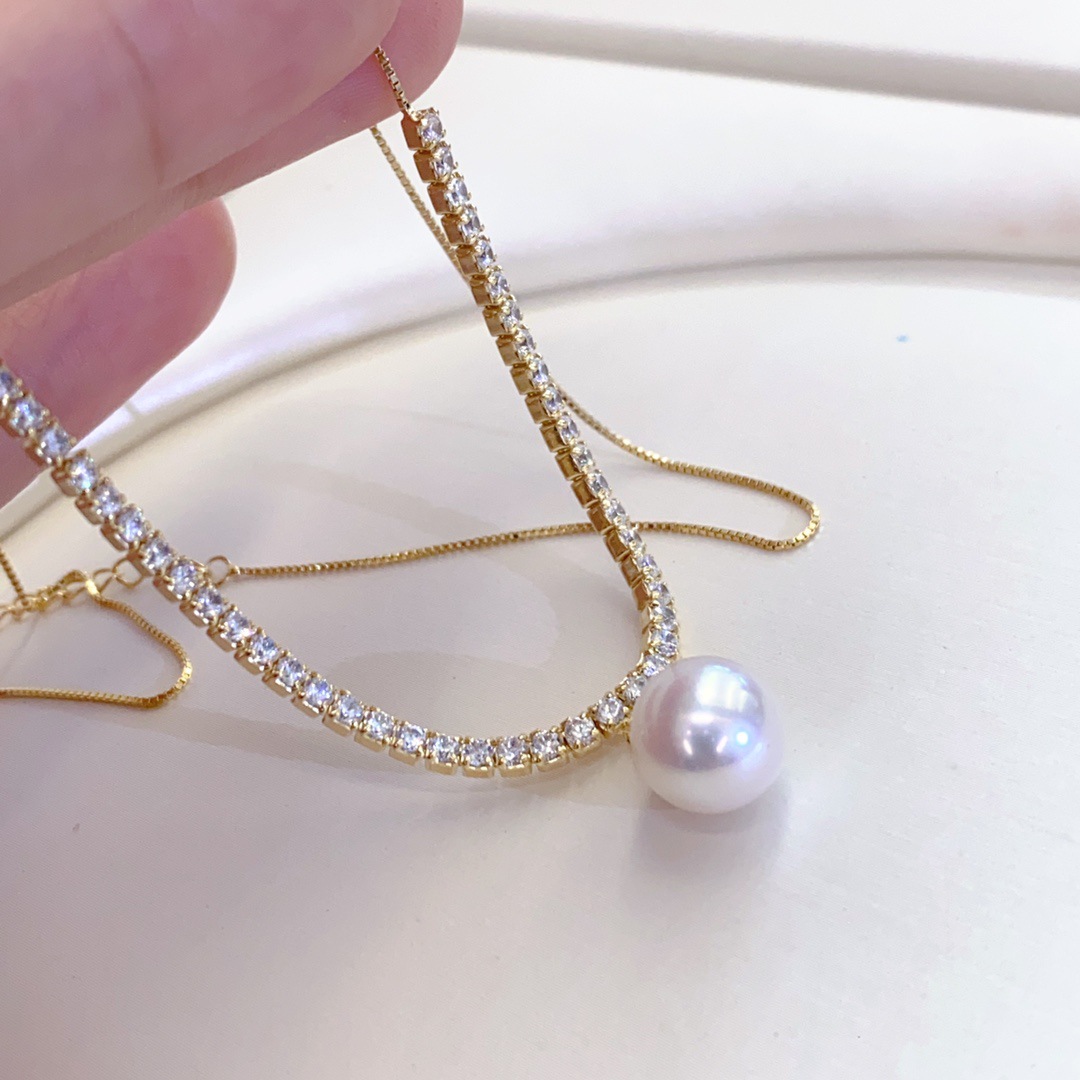 S 925銀の部品がきらきらと輝いています。真珠のジルコンのチェーン図は12-13mmの真珠を配合しています。