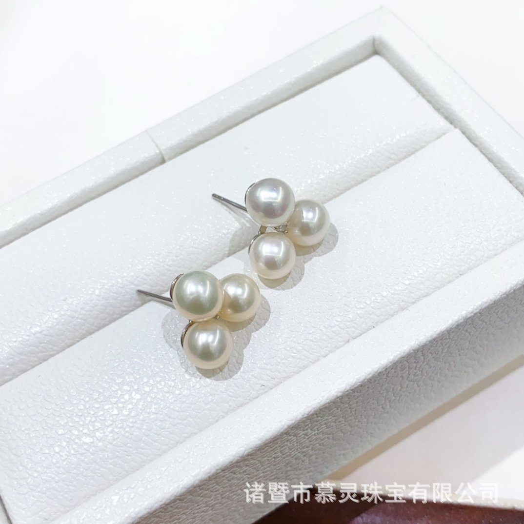 S925銀部品三珠ピアス白ジルコンモザイク参考ビーズ6-7mm部品はビーズを含まない